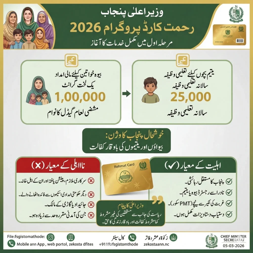 کیا بیوہ سہارا کارڈ اب ختم ہو گیا ہے؟ جانئے وزیراعلیٰ مریم نواز کے نئے “رحمت کارڈ” اور پرانی اسکیم میں کیا فرق ہے۔ کون سے خاندان اب 1 لاکھ روپے اور یتیم بچے 25 ہزار روپے حاصل کر سکیں گے؟ مکمل گائیڈ۔